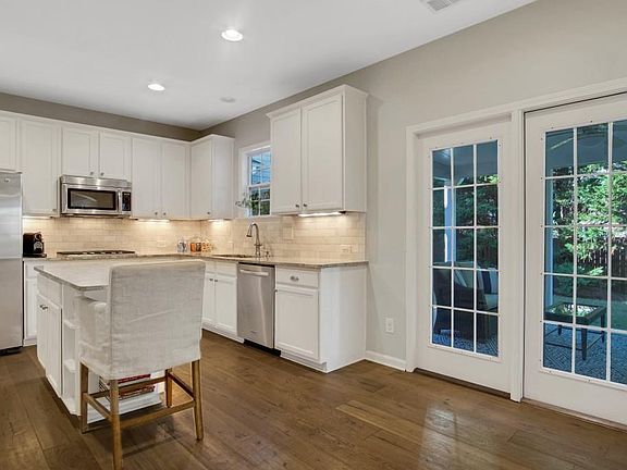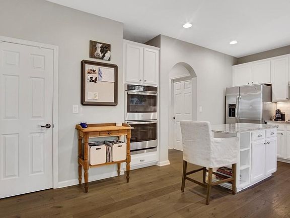 - Kitchen Features: Eat-in Kitchen, Pantry, View to Family Room, Stone Counters, Kitchen Island, Cabinets White