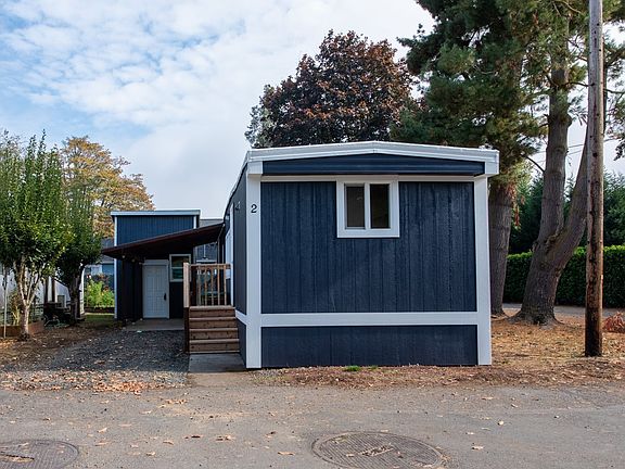 Don't miss this sweet single wide home in the heart of Coburg. It has been remodeled down to the frame. New walls, flooring, paint, wiring, plumbing, cabinets, ss appliances, siding. 3 Mini splits- one in the living room and one in each bedroom. You name it, it's been done. There is also a great shed that was built extra tall to allow for above head storage. It's walking distance to Coburg shops and eateries, has easy freeway access and and it's just minutes to Eugene. It sits on a larger corner lot that's 55x100 and space rent is $435. This is an absolute labor of love you won't want to miss!
