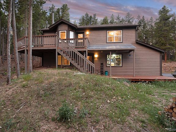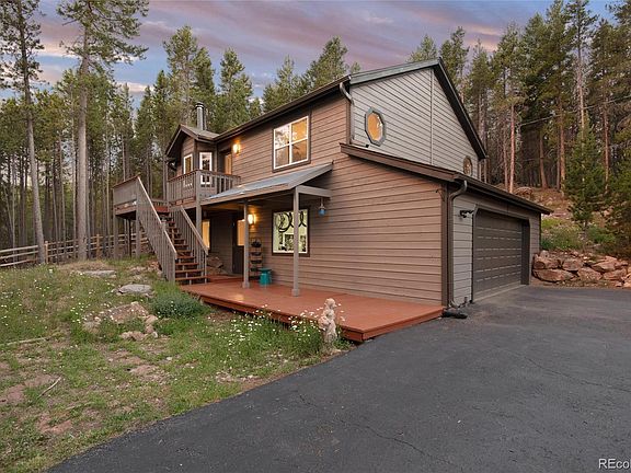*Open House 9/8 12-3!* Backs to National Forest! Welcome to your updated & secluded retreat, where mountain living meets modern comfort with convenient access to Denver. Nestled in the tranquil foothills, this charming 3 bedroom, 2 bathroom home sits on just over 1 acre, backing directly to public land! Imagine a daily hike out your back door through a pine forest, past rock outcroppings to rarely used trail system! Step inside to discover a well maintained interior that blends mountain modern aesthetics with practicality. The upper level features inviting wood floors, vaulted ceilings, and a stunning white kitchen equipped with slate appliances and granite countertops. Warm up on chilly evenings beside the wood burning stove in the cozy living area. The primary bedroom offers serene views and direct access to a beautifully tiled full bathroom with dual sinks. Downstairs, a comfortable family room awaits, along with a private bedroom, another full bath, and a convenient laundry room. An oversized 2-car garage provides ample storage space for vehicles and outdoor gear, complemented by a separate storage shed. Outside, an extensive wrap-around deck, freshly stained, invites you to relax and enjoy the serene surroundings. Recent upgrades include a new Class 4 Impact-Resistant and Class A Fire-Resistant roof, new vinyl windows throughout, and fresh exterior paint, ensuring both durability and curb appeal. Regular maintenance and upgrades to the septic system, plus an abundant well. A small fenced area is perfect for pets, while additional gathering spots like a private fire pit dot the expansive lot. Access to this mountain oasis is effortless year-round with paved roads leading to the property, further enhanced by the inclusion of a Honda tracked snowblower for winter maintenance. Don't miss this opportunity to own a slice of Colorado paradise, where privacy, convenience, and natural beauty converge seamlessly. To view even more photos, check out the virtual tour!