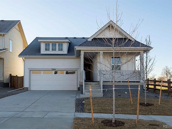 Welcome to your serene haven! Nestled in a peaceful locale, this home features three bedrooms, two bathrooms, and embodies the farmhouse ranch style with a welcoming front porch. Enjoy the tranquility of no rear neighbors and a partial privacy fence for added seclusion. Inside, the house boasts stunning truffle-stained hardwood cabinets throughout, adding sophistication to every corner. Pendant lighting in the kitchen illuminates the space, creating an inviting ambiance for culinary adventures and gatherings. The primary bathroom offers a luxurious walk-in shower, ensuring comfort and convenience. Conveniently located, this home provides easy access to local amenities, including The Villages at Prairie Center shopping center, dining establishments, and mailbox facilities. Enjoy the comfort of a quiet neighborhood while being just moments away from all your essential needs. Don't miss the opportunity to make this enchanting farmhouse-style ranch your own! Schedule a showing today and envision the joys of living in this serene and convenient abode. Contact us now to experience the charm and comfort this property has to offer! The Listing Team represents builder/seller as a Transaction Broker.