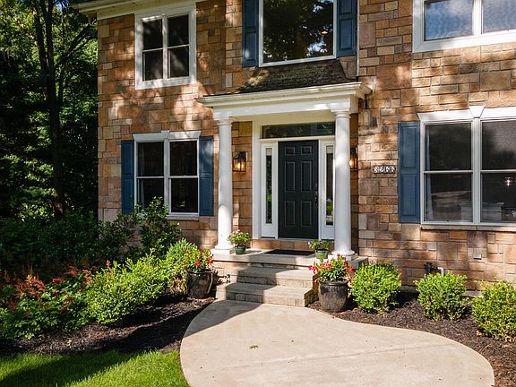 Welcome to this elegant five-bedroom home nestled on a private lot in The Estates. This residence exudes sophistication and comfort, perfect for both intimate gatherings and grand entertaining. Enter into the grand gourmet kitchen, a chef's delight, featuring premium KitchenAid & JennAir SS appliances: a gas range w/custom hood & pot filler, a beverage center, an ice maker, a two-drawer refrigerator, dual dishwashers, and a 48'' built-in JennAir refrigerator. The huge center island, quartz countertops & custom cabinets, enhance the kitchen's functionality, making it ideal for meal prep. The main floor features an office w/built-in bookshelves, a grand foyer leading to a formal dining room with a tray ceiling, and an open layout connecting the living room, kitchen eating area, and den. The beautiful living spaces are highlighted by a cozy gas fireplace, walls of windows allowing natural light to flood the rooms, beautiful wood floors, ceiling speakers and recessed lighting throughout. Also, a mudroom opens to a three-car garage and an updated half bath for convenience. Beautiful outdoor living with a fully fenced backyard with paver patio, & exquisite landscaping, create a private oasis perfect for relaxation and entertainment. The upstairs features four large bedrooms and three full baths, each thoughtfully designed for comfort and style. The spacious primary suite has a built-in dresser, and a huge primary bathroom featuring heated floors, double sinks, a tiled shower, and a walk-in closet with built-ins and center island drawers. The custom laundry room is conveniently located on this level and includes high-end Maytag commercial technology washer and dryer. The additional bedrooms are generously sized; one features an en suite bath, another is large enough to feel like an apartment, and the third includes charming touches. The finished basement is an additional highlight of this home. It includes a rec room, and family room, creating an expansive and versatile space for various activities. The rec room area includes a beverage center and ample storage. The basement also features a dedicated exercise room, a full walk-through bathroom, and an additional bedroom. Practical features like a tankless hot water heater, two egress windows, and additional storage exemplify the thoughtful design of this remarkable space. Experience the epitome of elegance, luxury, and convenience in this exquisite home. Don't miss your chance to make it yours!