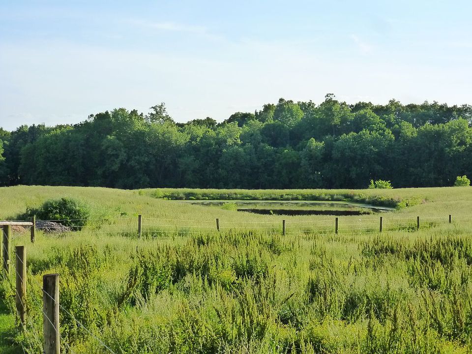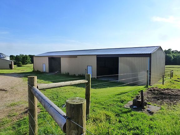 Property has a three bedroom one bathroom home that overlooks Little Pigeon Creek, and there are three barns, horse stalls, the pasture is fenced, and two ponds.