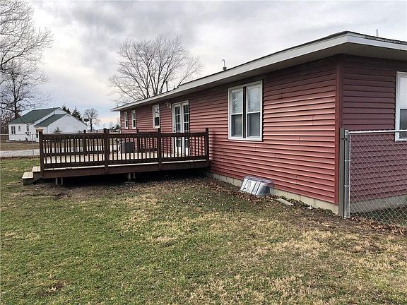 This home, on the outskirts of Noble, features a large family room, four generously sized bedrooms, two full baths, master bedroom with walk-in closet, beautiful kitchen with updated counter-tops and glass back-splash, newer flooring, updated water heater, furnace and A/C. Outside, there is a one acre plus yard that is partially fenced, a deck, and a two car detached building. The home has City water, sewer, and natural gas.