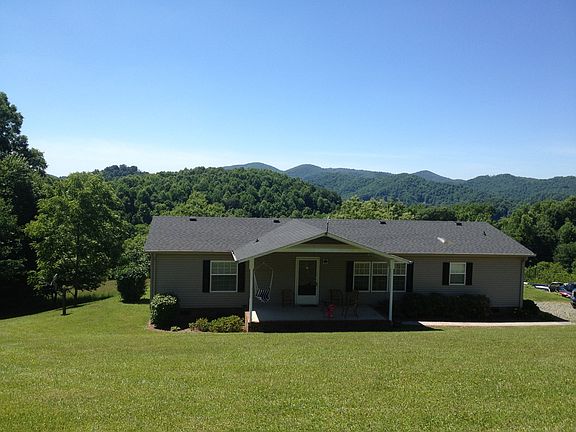 Long range views and gorgeous pastures compliment this mountain ranch on over 5 acres. It is rare to find such great views with easy year round access. House is immaculate inside and out and has concrete sidewalk, brick foundation and both a covered porch and a private deck off the master bedroom. It is a perfect setup for a mini-farm or horse property. 5 acres of the prettiest land you can find directly facing majestic Peak Mountain,the highest mountain in Ashe County. Nice laying pasture land with walnut, apple and chestnut trees. The home is meticulously maintained and has many upgraded features. Relax in the large living room with stucco finished walls and gas log stove. The open and spacious kitchen and dining area has layered mountain views out the large picture window. The master suite has french doors that open on to the deck and large bathroom with separate shower and large garden tub. House has 2 additional bedrooms and hall bath. Large covered front porch to enjoys views of Peak Mountain and back deck to enjoy multi-layered mountain views, pastures and wildlife.