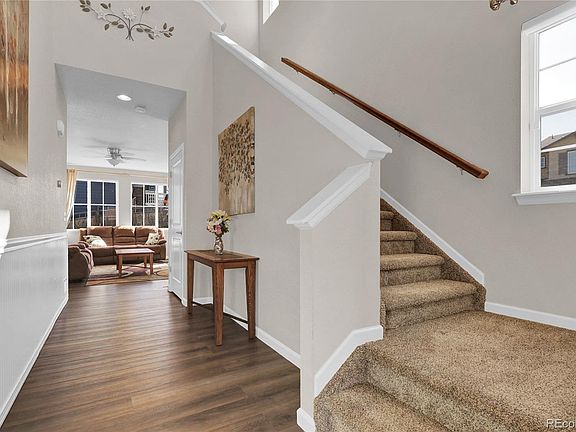 A beautiful updated move-in ready home situated on a large/private corner lot w/inviting curb appeal in the Meadows community.A 4 bed/4 bath2-story home is completely updated.Soaring 2-story entry w/an inviting wainscoted hallway leading to open floor plan w/newer vinyl plank floors throughout the main. Kitchen features:large island,slab granite,pendant lighting and 42"w/new painted cabinetry,all appl.included .In dining room,sellers added a huge coffee bar w/slab granite & custom pullouts easy storage & kitchen appliance access.The open floor plan offers spacious family room w/a cozy gas fireplace&abundant light with larger windows equipped w/Hunter Douglas coverings.Upstairs a primary suite includes a spa-like bth w/shower, soaking tub, dual vanities & walk-in closet,2 addtl bedrooms w/ full-bth w/double sinks & a convenient upstairs laundry room w/built in cabinetry storage(washer/dryer) & dual linen closets for convenience/storage. Full fin bsmt boasts addtl bdrm,¾ bth & bonus room,storage & mechanical closets equipped w/furnace/ac, hot water heater & whole house humidifier. Also, off kitchen on the main level is a sliding glass door - professionally landscaped private backyard w/full fencing(recently power washed)plenty of space for outdoor furniture grilling,retaining wall & drip irrigation system,new sod & newly repaired brick patio.Also note about this home:new paint throughout kitchen,family room,garage door all newer mechanical parts & ring doorbell/cameras,ceiling fans, tv’s & tv mounts incl in sale.A great location w/walking distance to many of amenities.The Meadows is known for its family-friendly atmosphere,well-maintained & is close to Hwy 85 (,& I-25 corridor,w/convenient access to Denver, downtown Castle Rock/ Colorado Springs.Many schools close & ACC/CSU college campus,regional hospital,& shops to include the premiere outlet mall,& variety of restaurants & grocery stores.Schedule your private showing this home is READY!