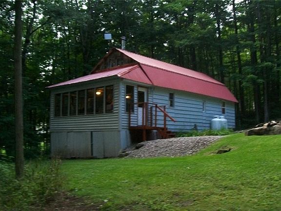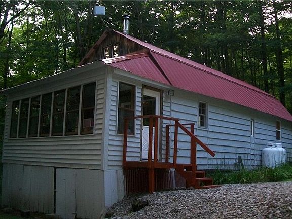 This cozy secluded cabin in the woods is located near the snowmobile trail system and bordered by state land offering privacy and an owner maintained nature trail. The attractive interior offers a first floor bedroom and bath plus a sleeping loft, quality kitchen cabinets, hardwood floors and vaulted ceilings. Feel cozy next to your wood stove or enjoy the enclosed front porch overlooking the woods. There are two roomy out buildings for storage and a workshop plus a turn around driveway. Recent updates include foundation improvements, jacking & leveling of the house and a new forced air propane furnace & duct work. 2020-06-09