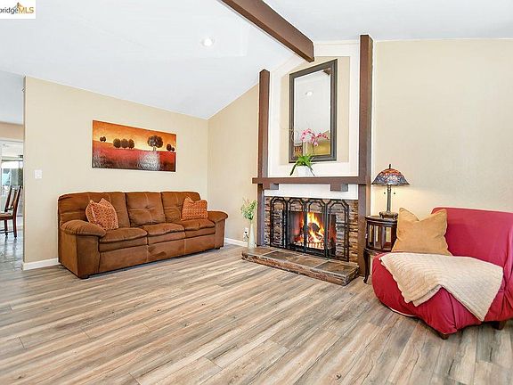PRIDE IN OWNERSHIP! This absolutely gorgeous ranch style home, complete with four bedrooms and 2 full bathrooms, is a must see! Upgrades around every corner! Brand new laminate flooring throughout, beautiful kitchen with stunning slate flooring, granite counter tops, stainless steel appliances, recessed lighting, custom cabinetry and a wine fridge. The kitchen leads out to spacious patio room, with a wood burning fireplace and recently installed carpet. This addition to the home offers a lovely view of the backyard. Master bed and bath are complete with stone counter tops and a large walk in closet. One of the highlight features of this home is it's incredibly landscaped yard, front and back. Palm trees, sparking gunite pool with a built in hot tub and slide, complete with a tool shed for storage. Attic fan and dual pane Milgard lifetime warranty windows, outdoor weather resistant speakers and HD security cameras. Schedule your showing today. This property WONT LAST LONG!