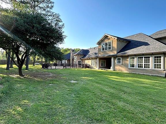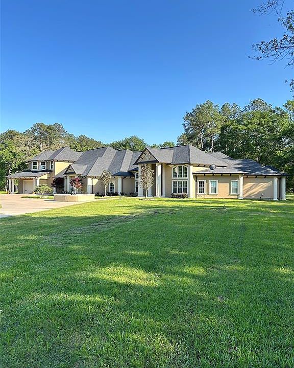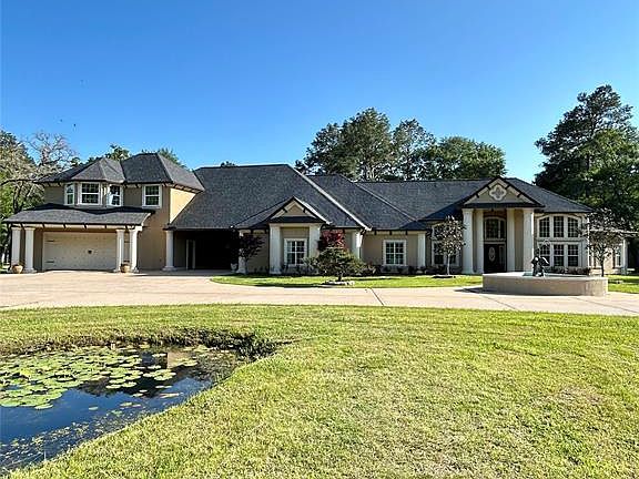 Enjoy peaceful country living in this expansive 6-bedroom, 5.5-bathroom estate on 5 acres. featuring wood, tile, and carpet flooring, crown molding, gas fireplace, formal living and dining rooms, study, built-in shelving throughout, sunroom with tons of natural light, elevator, and circular driveway. Create new recipes in the open island kitchen, equipped with granite countertops, gas range, double ovens, breakfast bar, ample cabinet storage, and walk-in pantry. The spacious primary suite with, walk-in closet, double vanities, walk-in closet, tub, and separate shower. Entertain in the expansive outdoor area, firepit, and detached garage apartment. Situated off FM 1488 and FM 362, residents can find nearby shopping and dining in Tomball Town Center, central Magnolia, and Fairfield Town Center.