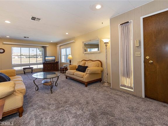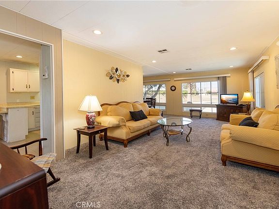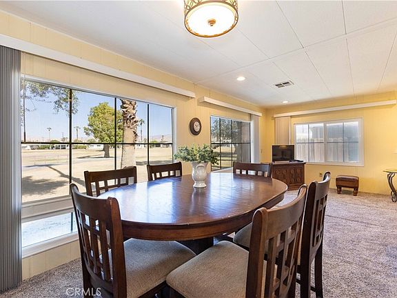 Welcome to your dream retreat, a 55+ community in Thousand Palms! Unlimited golf !! This stunning 2-bedroom, 2-bath property is nestled right by the golf courts, promising a tranquil and picturesque setting for your getaway. With an open floor plan, a charming patio, and a sunroom, this vacation home offers a perfect blend of relaxation and entertainment.