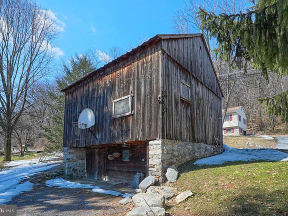 Once in a lifetime opportunity to own a piece of history! This 1700's log cabin has been updated & upgraded throughout & exudes charm! Log beam walls, well insulated home! Inglebrook brick floor in living room. Wood pellet stove for economical heat. Roof is R38. Newer roof, plumbing, wiring, 200 amp electric. Every inch of this home has been well utilized!Exterior shed is equipped with electric and heated! Large barn in as-is condition. Property is spring fed w/ fabulous spring water! Don't miss this!! Property spans both sides of E. Galen Hall Rd.!
