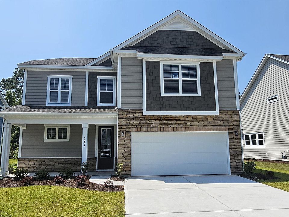 Waterbridge community is in the sought-after Carolina Forest area. Minutes from grocery stores, shopping centers, golf courses, attractions and the beach! The community is filled with resort-style amenities that make it hard to leave home. This gated community features a clubhouse, the “largest residential swimming pool in SC”, fitness center, tennis, pickleball, basketball, volleyball, and bocce ball, a lake and boat launch! This two-story home is perfect for any stage of life offering the primary bedroom suite and laundry room on the first floor. Stacked stone elevation, inviting front porch, and 8 ft. entry door with glass. This home also features a spacious kitchen with tiled backsplash, quartz countertops, a large island with room for stools underneath, walk-in pantry, and stainless appliances including a gas range. Beautiful laminate wood flooring flows through the foyer, kitchen, living room, and dining room with tile in the bathrooms and laundry room. Sliding glass doors off the dining area lead to the rear patio creating a seamless transition from indoor to outdoor living. Three nicely sized bedrooms and a versatile loft space are upstairs! It gets better- this is America's Smart Home! Ask an agent today about our industry leading smart home technology package that is included in all of our new homes. *Photos are of a similar Belfort home. (Home and community information, including pricing, included features, terms, availability and amenities, are subject to change prior to sale at any time without notice or obligation. Square footages are approximate. Pictures, photographs, colors, features, and sizes are for illustration purposes only and will vary from the homes as built. Equal housing opportunity builder.)