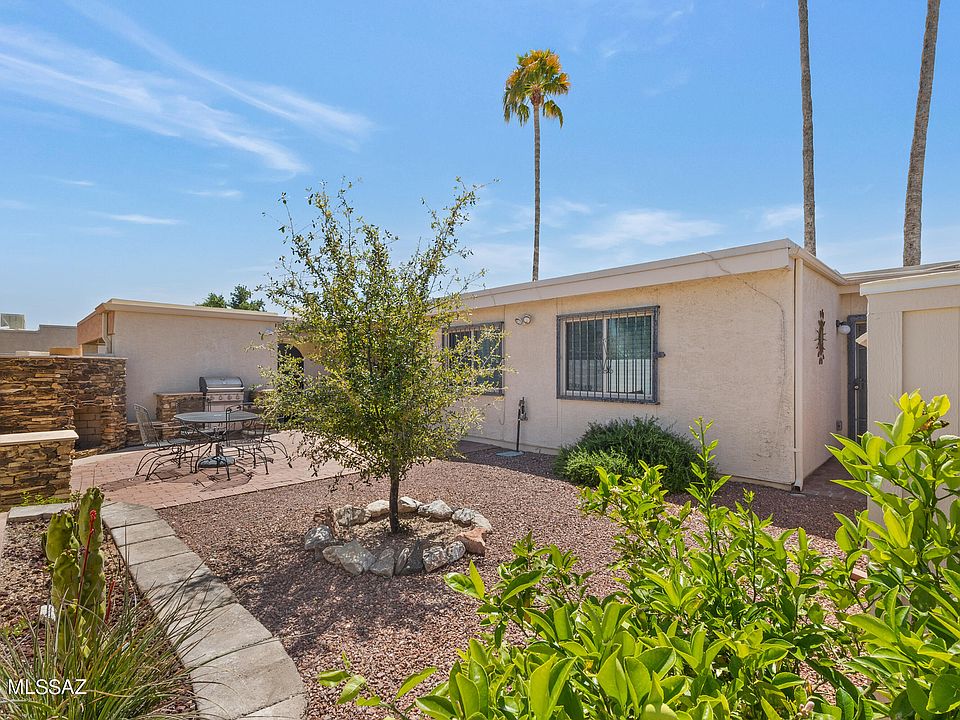 Rare find! 3 bedroom 2 bath townhome in the desirable Lazy Creek I subdivision . This home is an end unit with a generous patio/yard . Patio is next to open space with a built in fireplace and grill . North facing gives you peaks of our beautiful Catalina mountains. The seller has done the heavy lifting by having the home pre-inspected and having most all the repairs completed or already scheduled. Very open floor plan for flexible living and lots of access to the patio from both the living area & primary bedroom. The community pool is just steps away .close to the University and hospitals !