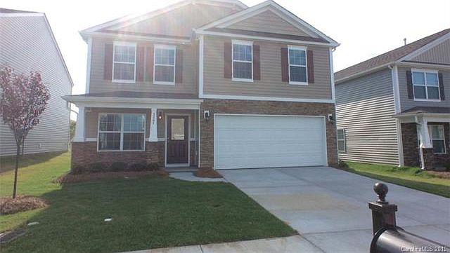 This pretty home with a covered front porch and stone accents offers approximately 2,060 sq ft of living space! The floor plan includes a formal dining room, a family room with a fireplace, and an eat-in kitchen with stainless steel appliances and sliding door access to the rear patio. The master suite features a vaulted ceiling and a deluxe bath with a dual-sink vanity, garden tub and separate shower, and the secondary bedrooms share a full bath. Use the roomy 2-car garage for extra storage.