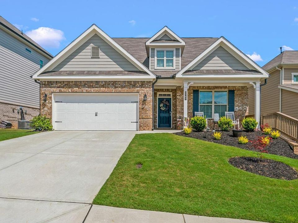 BACK ON THE MARKET AT NO FAULT OF SELLER! Stunning move-in ready home on INCREDIBLE LOT in highly sought after Trinity Falls subdivision. This floor-plan includes a MASTER ON MAIN design with 4 bedrooms, 2.5 bathrooms, large open, gourmet kitchen with 42' inch cabinetry, granite countertops, stainless steel appliances (double ovens), luxury flooring throughout the main level, spacious secondary bedrooms all with generous walk-in closets, a media loft upstairs perfect for gaming or relaxing, with laundry on the main, a huge master bedroom with separate his/her walk in closets, large master ensuite with separate tiled shower and tub, and a shaded covered patio great for entertaining. The home has a large, private, fenced in backyard close to neighborhood amenities, as well as an upgraded elevation with covered front porch in the perfect near-cul-de-sac location that make this home special! Just minutes away from 985, Mall of GA, Lake Lanier, Chateau Elan Estates, Lake Lanier, Reunion, Retail Shopping, and Parks and Recreation. Neighborhood amenities: clubhouse, pool, playground, tennis, pickleball, dog park, sidewalks.