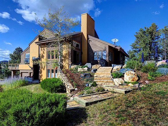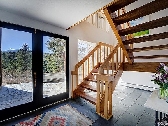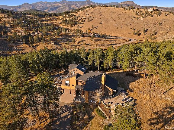 Nestled amidst the breathtaking beauty of Soda Creek in Evergreen, Colorado, this timeless quiet luxury 4bed, 4bath mountain modern contemporary home is a testament to exquisite design, elegant but casual, offers the utmost privacy. Situated on an expansive 6.80-acre estate within the lush tree line, this property offers an exceptional fusion of modern aesthetics & natural serenity. The striking architectural design immediately captures your attention. The exterior seamlessly combines sleek lines and contemporary finishes with the warmth of natural materials, creating a harmonious blend with the surrounding forest. Massive picture windows & multiple outdoor living spaces provide panoramic vistas of the surrounding landscape, inviting the stunning wilderness into your home. Step inside, & you'll be greeted by an open & inviting floor plan that seamlessly connects living, dining, & kitchen spaces, making it ideal for entertaining. Newly remodeled kitchen & baths boasts top-tier finishes & high-end materials, hardwood floors, custom cabinetry, & cutting-edge appliances. A state-of-the-art chef's kitchen serves as the heart of the home filled with soapstone counters, new cabinets, sun filled with easy access to outdoor decks. Spacious bedrooms offer tranquility,comfort, ample natural light, views of the pristine surroundings & main level primary, full remodeled bath & intimate wrap around cloest,access to the new flagstone patio. The interior captivates; the outdoor living spaces are equally impressive, new all season deck, flagstone patio provide the ideal settings for enjoying the scenic vistas. A true architectural gem that seamlessly marries modern luxury with the tranquility with nature. 4 bed/1 non conforming/4bath, on 6.80 acres of pristine land, this property offers a lifestyle of unparalleled refinement, seclusion, & immersion in the splendors of the Rockies.. Copy/Paste tour to browser: https://youtu.be/Z2D98Wy7OeE