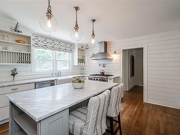 • Kitchen Features: Breakfast Bar, Stone Counters, Kitchen Island, Cabinets White