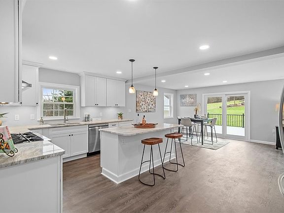 Situated on a half acre, this newly redesigned and remodeled home, by M.C. Enterprises Construction, offers main-level living! The open-concept main level offers loads of natural light throughout and a kitchen with gorgeous granite counters, stainless steel appliances, a 6-burner Forno stove, an island, and a large pantry for storage. The kitchen flows into the dining area with access to a large composite deck! The living area is open to the kitchen and dining area; great for entertaining. Relax in the primary ensuite with a stone fireplace, walk-in closet, and a bathroom complete with custom cabinets, double vanity, tiled shower with rain head, and sliding barn doors for privacy. On the 2nd level, there are 2 additional bedrooms and a full bath with a custom tile shower and ample cabinetry. A walk-in storage area completes the 2nd level. Enjoy the large 2-car garage with easy access into the laundry/mudroom. An unfinished lower level is ready for all possibilities to fit your needs!