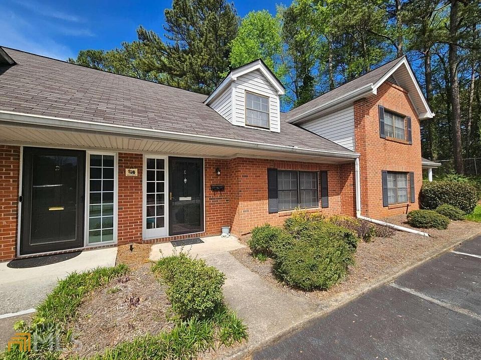 BACK ON MARKET, at no fault to seller!! LOCATION! LOCATION! This well maintained, brick condo is only minutes from I-285 and within walking distance to many restaurants and grocery stores. The split foyer entrance greets you with elegance. Checkout those beautiful hardwood floors in the spacious main living space!! On the main level you will also find a large bedroom with full bath access and a large closet. The carpets throughout are only 2yrs old!! Laundry on main level provides convenience. The spacious kitchen offers stainless steel appliances, all which stay with the condo(including washer and dryer). Upstairs is the OVERSIZED primary suite with an extra seating area or office. Included are two large closets, a full bathroom and a 2nd smaller seating area on the other side of the room. Near the larger seating area there is a large finished storage room. Enjoy your time out on the private patio grilling or gardening. There is a back entrance and sidewalk from the patio to the pool. This unit has two assigned parking spaces and several guest spaces available. This unit cannot be rented. Hot water heater 1 month old. Hvac 5 yrs old. Roof 5 yrs old and is maintained by the HOA. In addition, the HOA includes: pool, water, trash, exterior maintenance, insurance to exterior and pest control. HOA has done an amazing job at keeping the units updated and to code, new smoke detectors have been installed and all electrical updated to code as well. This unit is SOLD AS-IS, smoke and pet free.
