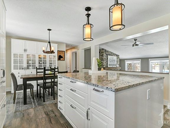 This Fantastic 2+ Acre property boosts a an OVERSIZED (approx. 1500sf) detached heated Building that could be your party palace, place to store your toys or garage/workshop. The Home is a 4 Bedroom, 2 Full bathroom raised bungalow with walkout lower level. So many fabulous features in this property. Newer remodelled kitchen. Some newer floors. Sunken living room featuring a wood burning fireplace/stove. High ceilings, bright rooms and the large windows allow for plenty of natural light. Each level of this house has 2 large bedrooms and a full bathroom. There is an above ground pool and beautiful decks to enjoy the outdoors. Underneath the water proof deck you will find a fantastic patio to lounge and be sheltered from the sun and rain. Cook on the newly constructed BBQ Bar and spend your evenings sitting around the beautiful firepit. There is plenty of parking in the large lane for your guests when entertaining. This piece of serenity is just a short drive to Almonte and Kanata.