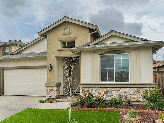 This Discovery home is only 4 years young and located on the north end of Chico in the Meadow Brook Ranch Subdivision. First you will notice the low maintenance yard with shrubs, flowers, fruit trees and artificial turf (all plants are on an automatic drip system). The front door opens to a formal entry looking down the hall to your bedrooms and opening to the common area. The fresh painted interior shines throughout against the dark stained cabinetry, tall ceilings and bright natural light that comes through. The kitchen boasts stainless steel appliances, large island, granite counter tops and plenty of storage/cabinet space. The open floor plan works perfectly with the tall tray ceilings over the living room, a sliding glass door to access the backyard and an array of windows to brighten it up. Other interior features include tile floors in the kitchen, carpet, recessed lighting and a gas fireplace. Head out to the low maintenance back yard and you'll realize the only thing you need to do is turn on your water drip system (or just leave it on auto), sit back and relax. The bonus exterior feature is the OWNED SOLAR, 18 panels total give you enough power to cover most of your electrical costs. This great home is located in a wonderful neighborhood and is just waiting to have new owners!!