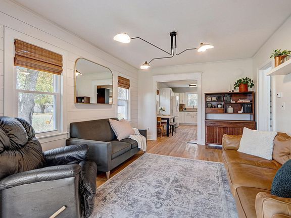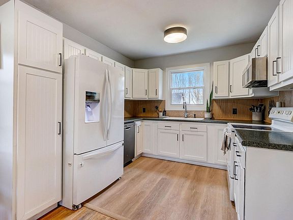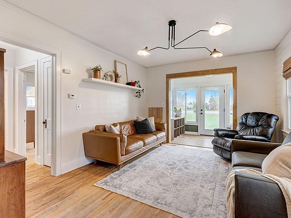 Charming 1.5-story home updated for modern comfort. On nearly 3 acres, surrounded by mature trees for privacy and tranquility. Sunroom greets you with beautiful floors & a wainscoting ceiling. Adjacent living room features shiplap accent wall, & original hardwood floors that extend throughout much of the main level. Kitchen has crisp white cabinetry & an adjoining dining space. A built-in breakfast bar provides extra storage. Two spacious bedrooms on the main level, steps away from the shared bathroom. Upper-level primary bedroom boasts dual closets & a mini-split system for year-round comfort. Updated mudroom with a built-in bench and cabinets. Lower level bonus room added in 2020, & renovated 3/4 bathroom (2023) features a walk-in shower & sauna. Step onto the large patio for outdoor relaxation. Property includes a detached 2-car garage, a storage shed, and a spacious workshop. New furnace (2023) ensures year-round energy efficiency and comfort.