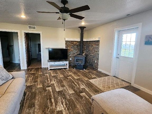 This hilltop retreat boasts breathtaking views for miles. Nestled on 11 acres, this barndo-minimum home features durable and efficient ICF (Concrete walls). With a spacious 2 bedrooms and 1 bathroom layout, there's ample space to expand if needed. The 1300+ sq.ft. finished home offers an open floor plan with a well-appointed kitchen, sizable walk-in pantry, and generous living area. Plus, a 4+ car attached garage with concrete flooring and a tall roll-up door provides ample storage for all your vehicles and toys. A small additional shed is perfect for housing a lawn mower and outdoor furniture, while a large dirt pad awaits the construction of another building. Positioned in a prime hunting location, the property also benefits from a new septic system and high-speed internet availability.