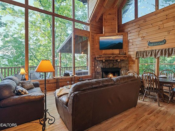 Magic Mountain is a spacious 3 bedroom, 3 story cabin with Beautiful Mountain Views, and in the highly sought-after Brother's Cove Gated Community. Sleeps 10, offers lots of entertainment, access to a gorgeous community pool overlooking the mountains, and a great location. Just a short drive to Pigeon Forge, Gatlinburg, and the National Park. Some amenities include -Private Hot Tub-HUGE Game Room-Arcade Game-Pool Table-Foosball & Shuffle Board-3 Outdoor Decks with Stunning Views-Community Pool-2 Jacuzzi Tubs-Fireplace. On the main floor is Bedroom #1: Spacious primary bedroom with vaulted ceilings, Queen-sized bed, in-room jacuzzi tub, attached private bathroom with walk-in shower & Access to the large outdoor deck. The main level also has a sleeper sofa & a half bath off of the living room. Upstairs is Bedroom #2: Additional primary bedroom with Queen-sized bed, in-room jacuzzi, attached private bathroom with walk-in shower & access to a private outdoor balcony. Downstairs is Bedroom #3 & Game room combo with Queen-over-Queen Bunk Bed, pool table, arcade game, foosball, half bath, laundry room & a large outdoor deck. Cabin comes fully equipped and completely turn-key. Is currently being used as a Short Term Rental, managed by Avada since April 2023. Would also be a great second home or permanent residence. Cabin first available to view during turn on 11/21/2023 between 12-3.