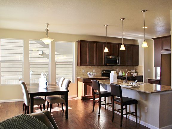 Move in Ready! Low maintenance two-story with 3 bedrooms plus loft, unfin. bsment with 9 ft ceilings, and alley access 2-car garage. Traditional floor plan features a formal dining room, study, and family room with fireplace. Gourmet kitchen includes granite plus island with breakfast bar and spacious nook. Luxurious master suite spans half of the upper level & includes 5-piece bath and WIC. Large covered porch. Landscaping and privacy fence included. Overlooks open park area. 2x6 construction & lots of energy saving features.