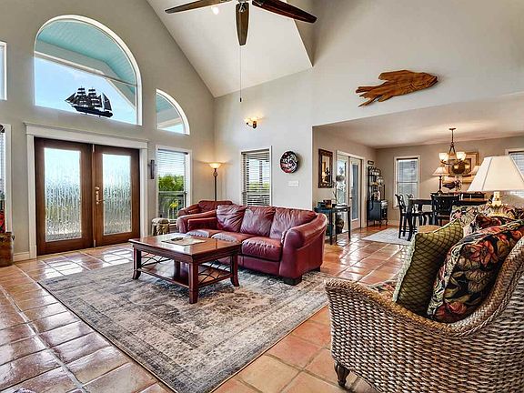 Enjoy amazing views of Old River and the Gulf of Mexico from open decks and screen porches of this spacious protected canal-front home on one of the highest elevated lots on Ono Island. Professional grade kitchen with 5-burner Bosch gas cooktop, upscale finishes throughout, 16' great room ceiling, 2 master suites, Bahama shutters, covered boathouse with lift/metal roof, crushed coral driveway pavers, landscaping, 5 decks/2 large screen porches. Each bedroom has a private deck & bath. New grinder pump and irrigation well pump. Perfect for entertaining with a new custom designed POOL with waterfall.