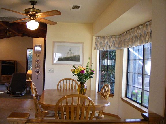 Spectacular property, lovingly cared for and maintained by only one owner. First time on market this is a treasure. Professionally designed landscaping is unmatched. Home is a design masterpiece. Vaulted cedar and pine ceilings in living room and family room. Two office nooks for study, built in book cases and storage in two rooms. Wet bar in family room with slider that leads to the back yard. Master is a suite with huge walk in closet double sink in bathroom. This room also has a door that leads to a deck, back yard and hot tub. Kitchen has tons of space, cabinets and counter tops,includes Kitchen isle. Living room has pellet stove and gorgeous high mountain views. Vaulted patio roof line design covers this view patio for star gazing and entertaining. Lush side yard landscaping includes 12 citrus trees along property line. Back yard is a world of its own. RV barn and shop have electricity. Yard is nature get away. Magic happens here. Words cant describe the wonders.