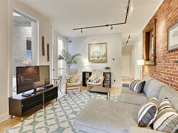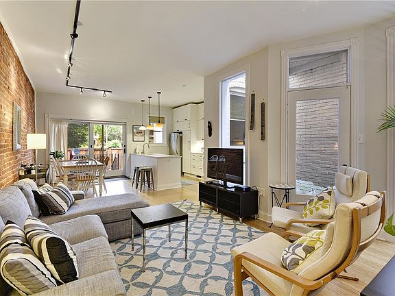 Layout and tour link: Unit available August 1st. My wife and I are the owners and are attentive to the tenants and the property. This is a great place for a couple that need an extra bedroom, outdoor space and parking. Recently renovated, furnished apartment in 2-unit rowhouse - 920 sq ft with great open-plan entertaining space, private fenced-in back yard and off-street parking. Light-filled living and dining area with 9 1/2 ft ceilings, exposed brick and hardwood floors throughout. New energy efficient heat pump for air-con and heating with washer and dryer in unit. Generous storage throughout including basement area. Short walk to Eastern Market, H Street, Union Station, D6 Bus line and close to bike share stations. Excellent convenience store at corner. One-year lease preferred with one month security deposit. All utilities except water are the responsibility of tenant. Sorry, no pets. Application with credit report required. Owner pays for trash, water and sewer. Tenant responsible for gas and electric. Application with credit report required.