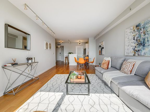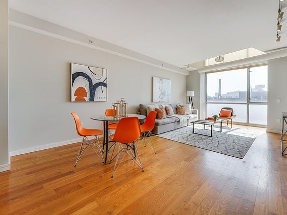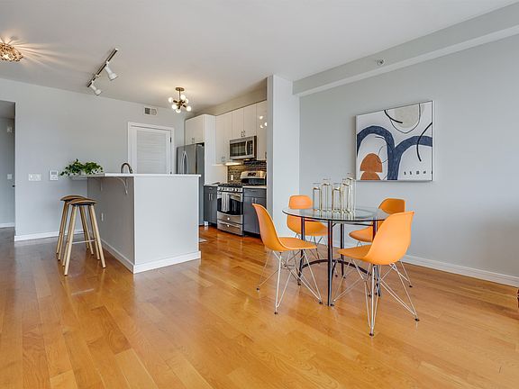 Welcome to urban luxury living in Downtown Jersey City's Village section! This remarkable south-facing penthouse condo offers an abundance of natural light streaming through its floor-to-ceiling windows. Located in a modern elevator building, this 2-bedroom, 2-bathroom is your dream home! As you step inside, you'll be greeted by an inviting open floor plan that seamlessly connects the living, dining, and kitchen areas. Hardwood floors flow throughout, and the unit has the added bonus of custom Energy Efficient Hunter Douglas Honeycomb blinds. The heart of this home is the chef's dream kitchen, fully equipped with top-of-the-line stainless steel appliances, quartz countertops, and custom cabinetry. The designated formal dining area is perfect for hosting intimate dinners for entertaining friends and family. The primary bedroom offers ample space to accommodate a king-size bed. It features an updated ensuite bathroom with modern fixtures and finishes. The second bedroom is generously sized with a second bathroom, making this condo ideal for families, guests, or roommates. Additional features include central heating and cooling, an in-unit washer/dryer for added convenience, plenty of custom closets for all your storage needs, and a deeded parking spot for your convenience. Location is key, and this condo delivers on all fronts. Just a short walk away, you'll find the Grove Street Path, providing easy access to Manhattan and beyond. You'll also be surrounded by an array of excellent restaurants, charming cafes, and boutique shops, making Downtown Jersey City a vibrant and convenient place to call home. Don't miss this opportunity to experience the best of urban living in one of Jersey City's most sought-after neighborhoods. Schedule your private showing today and make this fabulous penthouse condo with a deeded parking spot your new home!