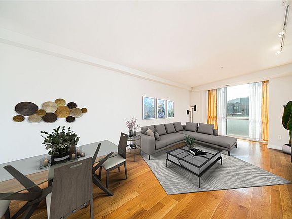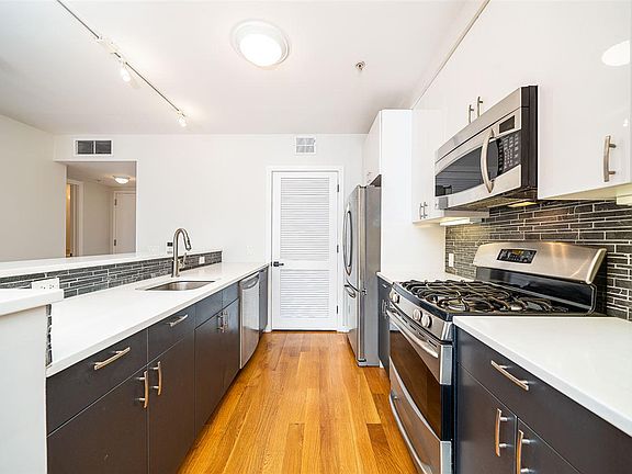 Beautifully designed 2 bed 2 bath home with 1 car parkingat The Flats at 327 in Downtown Jersey City. Enjoyentertaining with this wide open floor plan, room for 6-8 person dining table and living room that accommodatesa sectionalsofa. The modern kitchen includes two tone cabinets, quartz countertops, tile backsplash, under cabinet lighting, SS GE Profile appliances, and huge breakfast bar. With a Southern exposure and floor to ceiling windows, this space is flooded with light. Other features include solid oak floors, central heat/air, an in-unit laundry room, pocket doors, video intercom and ample closets. One of 14 modern residences in a structural steel-reinforced converted 19th century building with an elevator. Convenient to restaurants, shops, public transportation: 7-minute walk to Grove St. PATH.
