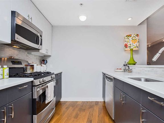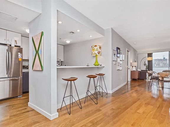 This airy and bright, South-facing 1bdrm, 1bath, 910sf condo in the heart of Downtown Jersey City features a spacious dining and living area, extra-large double pane windows, tons of closet space, luxurious bath, lovely eat-in kitchen with ss appliances and w/d in unit. You have to see it to believe it. 10 minute walk to Grove St PATH, shops, restaurants, schools and houses of worship all just steps away. Welcome to your new home at The Flats at 327.
