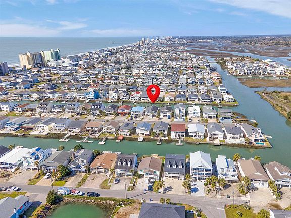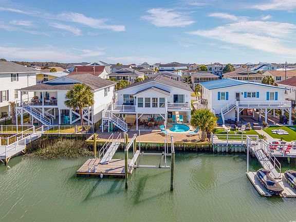 Beach life at its best! The sellers combined classic and modern for an incredible space for living and entertaining family, friends and many guests! This home truly showcases everything coastal living has to offer. Being only a short walk to the white sandy beaches of Cherry Grove this home would be a great second home or very lucrative rental property (seller has never rented this home) Upon entering this light-filled home you will fall in love with the open floor plan and large windows in the Carolina Room overlooking the channel. The heart of the home is a stylish gourmet kitchen which was recently updated to include new stainless-steel appliances with a 2-drawer beverage cooler, quartz countertops and under cabinet lighting. Adjacent to this fabulous kitchen is the newly renovated Carolina Room with breathtaking views of the waterway and is perfect for family gatherings. The main floor features three guest bedrooms and two bathrooms that were just updated in 2024 and an enormous primary bedroom with a private balcony just right for enjoying your morning coffee! Plantation blinds throughout the home! The ground floor is where it’s at!!! It boasts a large sitting/dining area for entertaining and enjoying the captivating views of the waterway, pool, sundeck, maintenance free grass great for putting green, custom outdoor stone bar with granite top comfortably seats eight, refrigerator, freezer, storage area, shower and bathroom. Ample parking spaces for parking your cars, golf cart, motorcycle etc. Private boat dock and electric lift installed in 2023. Too many amenities to list! Now it's time to make your beach dreams come true! Paradise awaits!!!