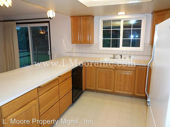 Three Bedroom Home in Rivercrest Neighborhood of Oregon City - Neighborhood: Beautifully situated in the Rivercrest Neighborhood of Oregon City. Walking distance from two great parks and a scenic view spot where you can see all the way to down town Oregon City. Living Area: Carpeted living space with a wood-burning Heatilator fireplace. Separate laundry room with full-sized washer and dryer and half bath. Fresh paint throughout! Kitchen: Lovely Open Kitchen and dining are joined by bar and slider to back yard. Kitchen has oak cabinets, large Kitchenaid refrigerator, and built-in electric stove. Bedrooms/Baths: This 1,500 square foot home features Three bedrooms and One and a half bathrooms. Lots of window and plenty of natural light! Exterior/ Parking: Two-car garage (no auto opener) has workbench and a door to back yard. Fenced back yard. Available for minimum one year lease with option to renew. Yard care included for an additional $100/month. For additional information on this home, please contact us at 503.639.4478 or visit our website at www.lmooreinc.com to view all our current rentals. Rental Criteria: Good credit, good rental history, income two and a half times the rent or more per month and no criminal record. Tenant Responsible for: All Other Utilities. Heating Source: Gas Furnace Cooling Source: Central Air Furnished: No Pets: Negotiable - $35 Pet Rent per Month plus additional $250 Security Deposit Elementary School: Jennings Lodge and Candy Lane Middle School: Gardiner Middle High School: Oregon City High Disclaimer: All information, regardless of source, is not guaranteed and should be independently verified. (RLNE3781180)