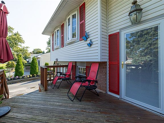 Welcome to this maintenance-free vinyl-sided 3/4 bedroom, 2 full bath raised ranch in the heart of Greece, just minutes from shopping, restaurants, farm markets, and convenient access to the expressway. Step inside to find a bright, freshly painted interior. Highlighting this home is a brand new roof (3 months), which ensures peace of mind, Central Air (2 yrs), gutter sensors for de-icing, and a watering system for arborvitae in the front yard. The main level features a living/dining space with easy access to a spacious deck—perfect for outdoor entertaining or simply relaxing. The lower level offers a family room, a full bathroom, and the option for a 4th bedroom or office with walkout access to the backyard. Don’t miss out on this opportunity. Schedule your showing today! Delayed showings begin