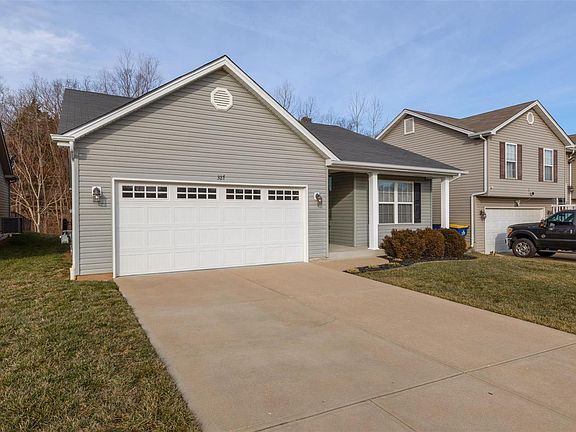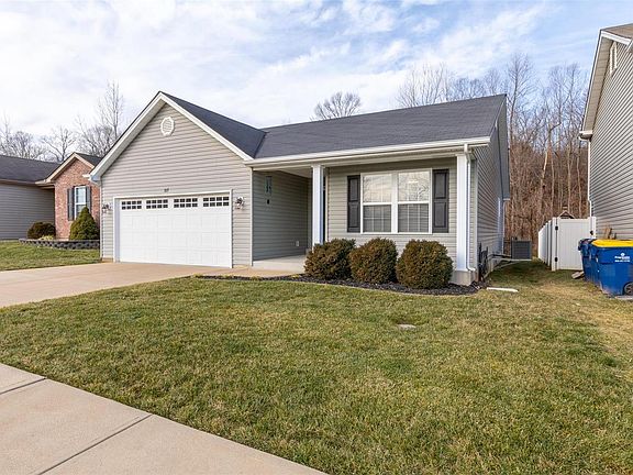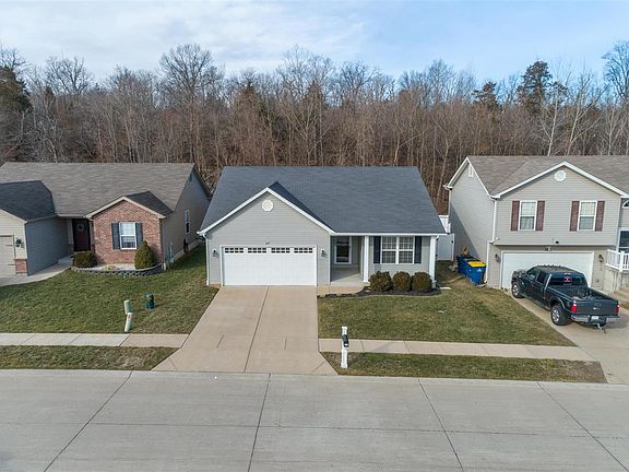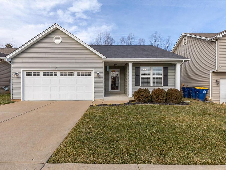 Outstanding modern ranch that is a must see. Will impress the pickiest homebuyer. Great curb appeal with a two car garage and cozy front porch. The great room has a vault and lots of natural light. This home has a divided floor plan with a rear facing kitchen. The master bedroom suite is equipped with all the modern conveniences you expect. Low threshold walk in shower for added convenience and large walk in closet add to the luxury of this home. The Guest rooms are large and have easy access to the guest full bath. A "U" shaped kitchen will impress the most discerning cook of your family. Enjoy custom cabinetry and lots of storage space. Bamboo hardwood flooring and high end carpeting are throughout the home and add to the modern feeling. Both the front and rear yards are flat and spacious with the rear yard backing up to woods. Not only does the rear yard allow for the viewing of wildlife but also creates a natural buffer for sound. This home has too many features to mention here.