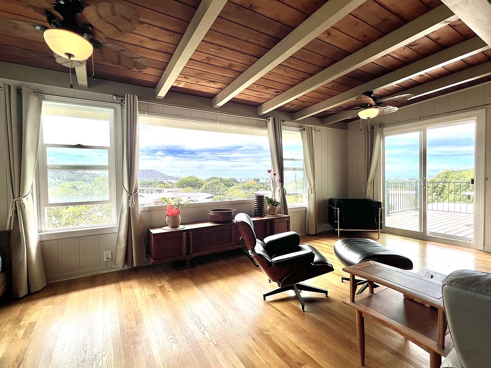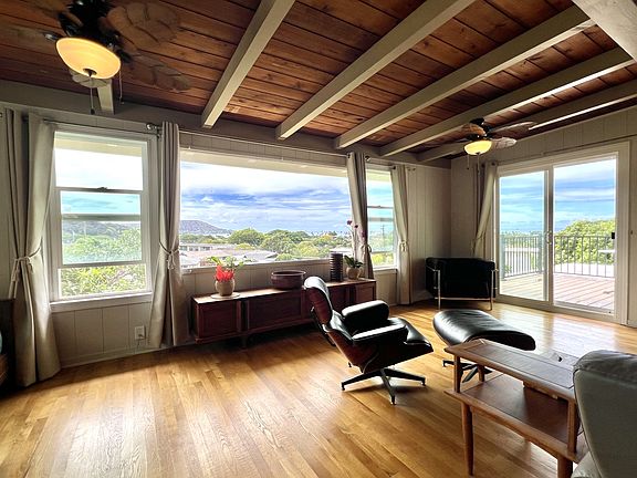 You will love this large 2-bedroom, 1-bathroom home with its amazing views and island feel. This home comes fully furnished, including kitchenware, linens, towels, etc. The trade winds keep it cool, and if needed, there are ceiling fans throughout as well as AC in the bedrooms. The single-level home sitting on the hillside that affords views of the palm trees, waves, and ocean beyond with carport parking right outside your kitchen will make it a delight to come home every day. The kitchen and bathroom have recently been updated, and the home is in immaculate condition. You must come see it to believe how special this quiet retreat is. This lovely residence is located on a cul-de-sac in the quiet neighborhood of Niu Valley. An ideal location in East Honolulu with easy access to shopping, dining, surf, hiking, universities, and so much more. Utilities Included: Electricity (limit of $150 with solar panels), Sewer and Water, and basic Wi-Fi internet. PV panels and battery back-up kicks in during power outages. No more using flashlights during HECO outages. The Tenant is responsible for the General Excise Tax on the Rent, which is currently 4.712%, bringing the total monthly rent to $4,450. This property has 2 separate apartments below. They each have their own entrance and use street parking. Longtime great tenants in place downstairs. Available mid September. Pets Negotiable. Please inquiry.. Security deposit is equal to one month's rent. Application Fee: $45. No Smoking in or within 20 feet of the property. 1 yr. lease preferred. Renters insurance required. For showings, contact Matt: Matt Brummel, RB-22145 Rental Property Management Hawaii, LLC RB-23207
