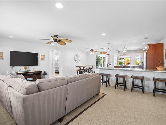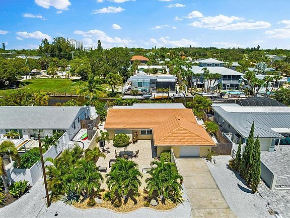 Welcome to this amazing Siesta Key vacation home! This beautiful 3 bed/2 bath canal-front beach home is ideally located just a short stroll to Siesta Key Village, with its array of shops, dining options, and entertainment. Situated on a quiet residential street, this home has so much to offer. As you enter this exquisite home, you will find original and restored terrazzo floors, wood beams with modern finishes. The beautifully updated kitchen with stainless steel appliances, wood cabinetry, comes fully stocked with ample cooking utensils, pots and pans, etc. The primary bedroom overlooks the pool area through a charming bay window, it features a king-size bed, en-suite bathroom with dual sinks and walk-in shower. The additional 2 bedrooms are beautifully furnished. Step outside to the large open pavered patio with a beautiful, heated pool and spa, and the serene canal water views from your own backyard leading to the Sarasota Intracoastal, a haven for kayaking and paddle boarding enthusiasts. This luxurious vacation home is truly one-of-a-kind and is also a short distance to the beautiful Siesta Key Beach with its sparkling turquoise waters of the Gulf of Mexico and the crystal quartz sand. The home is also ideally located for fishing, swimming, snorkeling, paddle boarding, biking, shelling, boogie boards, beach run/walk, or RELAXATION, sunbathing, picnicking, building sandcastles, sunsets, or enjoying live music, shopping, and award-winning restaurants. Looking to venture off Siesta? Enjoy an evening out in Downtown Sarasota located just 7 miles away where you will find a vibrant music scene, numerous art galleries, elegant shops and many restaurants with outdoor seating. **Note: The property has recently had some updates made, new photos will be coming soon**