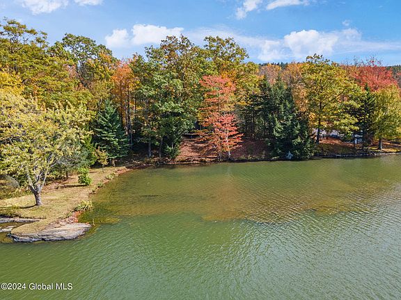 Discover your lake side retreat nestled among mature trees in the Catskill Mtns for complete privacy with your own peninsula, cove & over 336 feet of direct frontage on Bear Gulch Lake. This turn-key, fully renovated contemporary 3-bed, 1-bath gem features a bright open floor plan living space with beautiful bluestone fireplace, windows on 3 sides showcasing the gorgeous lake views & kitchen with new appliances & quartz countertop. Entertain the family on your front deck overlooking the idyllic mountain scenery & enjoy year-round activities such as fishing, swimming & boating. Includes separate outbuilding with potential for additional sleeping quarters. Within walking distance to the 1800acre Lutheranville State Forest hiking, hunting & groomed snowmobiling trails. Only 3 hours from NY.
