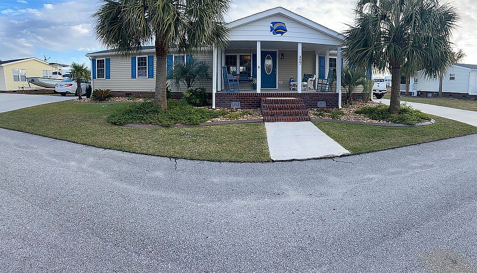Beautiful DW mobile home. Completely remodeled in 2019. Large bedrooms , high ceilings, Open floor plan. granite countertops in kitchen and bathrooms , tile backsplash in kitchen, vinyl flooring, jacuzzi bathtub, new roof, new AC unit, walls are all drywall, 2 concrete driveways, 12x12 shed, large deck with upper deck that views the ICW. House located in the desirable gated neighborhood of GCL. Amenities include boat ramp and pier, pool, pavilion, basketball court, and playground . Water , garbage pick up and taxes included