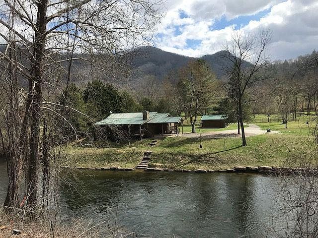 Now available a pristine mountain cabin on the Tuckasegee River, with approximately 270' of frontage. It has been totally renovated and updated with natural wood and stone products. The river/road side of the home has hurricane glass for noise reduction. An instant-on hot water heater has been installed; A wood burning fireplace is perfect for chilly evenings. Pets are welcomed by the fenced-in area and a large workshop/storage building is easily accessible. The river bank has been stabilized with stone and has steps to the river, perfect for your kyak or canoe. The extra lot could have a guest/in-law home easily built with septic already installed and possible shared well. Flat topo with no excavation or roads to be built. River Ranch Village, a great small community, is close to WCU and Cullowhee and a short distance to Sylva and Cashiers. Also includes parcel # 7568-63-2550.