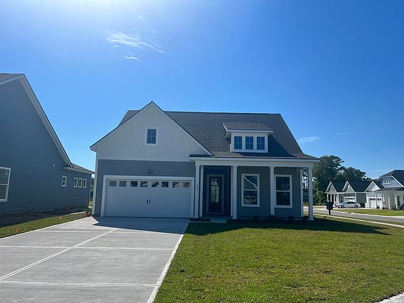 Under Construction Wren Bay Community boasts over six acres of pristine ponds, 2.5 acres of wetlands, and 2.8 acres of green space. The resort style swimming pool will offer a sundeck, bath house, and outdoor gathering space. Easy access to everything you need right outside your door! We are just 5 miles from the crisp blue waters of the Atlantic Ocean, 3 miles to Marshwalk, and just minutes from retail and grocery shopping. This Wren Plan offers an open concept with soaring 10ft ceilings, Enhanced Vinyl Plank flooring, Gas cooktop, Wall oven, Sunroom, double door entry into the Master, large 5ft Tiled shower, and double sinks. The garage is a wood workers dream with a tandem garage, that can be used as a workshop, golf cart bay, or extra storage!