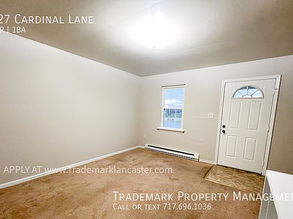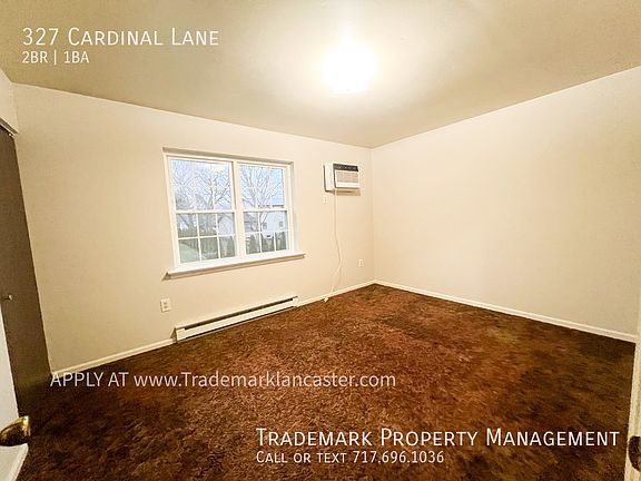 327 Cardinal Lane 2 Bed 1 Bath Town Home This nice end of row town home is available to be your new home! It features off street parking, front and rear entrance, a basement for storage, 1st floor washer/dryer hook ups, a nice rear patio, and more! Tenant pays electric (electric heat). $50 to apply. Please go to www trademarklancaster com to apply and set up showings. Tenant pays electric, water/sewer/trash Min 650 Credit Score and good rental history required
