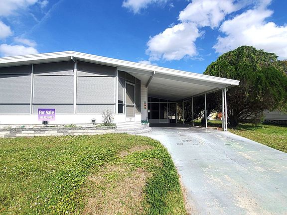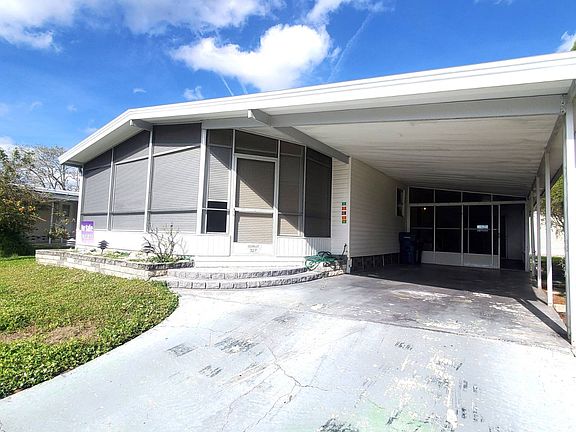 Reduced $42,000 Turnkey Come get your slice of Florida living with this 2bed/2bath manufactured home. This home is being sold Furnished and Move-in Ready. What you see, is what you get! Galley kitchen with plenty of counter and cabinet space. The kitchen is white and bright with a large storage closet and pantry. Dining room and living room open to one another. The dining room has a built-in wall hutch for extra storage and to display your décor. The large living room is perfect for entertaining. Sliding glass door leads out to the front lanai. This space would make a perfect office or a cozy reading room. The lanai has indoor pull-down hurricane shutters. You can keep them closed or open them up for the Florida breeze. Berber carpeting throughout except for the kitchen and bathrooms. The bedrooms are both large with oversized closets. The guest bathroom has as tiled tub/shower combo. The master ensuite features a step-in shower with a sliding glass door. The Roof is metal. The AC and Hot water heater are only a few years old. The driveway has a covered carport, screened patio room and a huge utility shed with double doors and a ramp. This shed could easily store a golf cart, tools, bikes, beach gear and holiday décor. The shed hosts the washer, dryer, utility sink and hot water heater. Great location and close to Sunset pool. If you're looking for an affordable move-in ready home that needs some TLC...look no further!! Colony Cove is an age qualified (55+) five-star resort community of manufactured/mobile homes. The "Cove" boasts 5 clubhouses, 6 heated pools, a riverfront pavilion, and private fishing pier, a private marina, a fenced dog park (very pet friendly), tennis, shuffleboard, new pickleball courts, 2 new fitness rooms, 24-hour patrol, clubs of every interest, and much more. There are daily planned activities throughout the park. Bottom line, if you get bored here, it's your own fault! The lot rent in Colony Cove is based on the home's location. While the monthly lot rent may not be the lowest around, it's by far the best value for the money. Not only does the monthly rent cover all of the amenities of the community listed above, but it also covers almost all other monthly expenses such as water, sewer, and trash pickup. All property taxes, lawn maintenance...pretty much every monthly expense except electricity and internet. The current lot rent on this home is estimated at $1051.23 per month. All listing information given to us is considered appropriate and reliable but we always recommend home inspections by independent companies who have a background and thorough understanding of manufactured homes. We cannot guarantee the accuracy of the information given to us or the home's condition. Lot rents are determined by the community office, not our company.