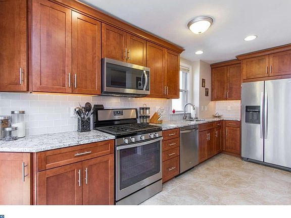 This charming 3 bedroom twin home is a steal for buyers searching in Ridley Park and its surrounding areas. It's situated on a small cul-de-sac street in a great location where you can walk to the train station in just a few minutes. The formal dining room and spacious living room, both with hardwood floors, lead to the brand new kitchen. The kitchen has been completely remodeled within the last year including new stainless steel appliances, cabinetry with under cabinet lighting, glass backsplash and granite countertops. There is a large deck off the kitchen through the sliding glass doors providing an ideal space for entertaining as well as providing great natural light throughout the first floor. Upstairs you'll find 3 good sized bedrooms with ample closet space, a full bath, and a linen closet in the hallway. The full basement is spacious and bright offering storage and laundry as well as a partial bath and rear entrance. A shed out back also provides additional storage. The nicely sized yard with patio makes a perfect place to enjoy the summer weather. Come see today!