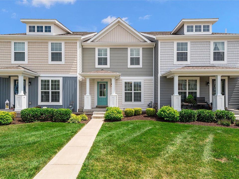 Welcome home to Countryshire Drive! Main level features an open floorplan with LVT flooring, kitchen with pantry and ample cabinetry, convenient half bath and laundry room. Dining room with sliding glass door leads out to private patio that overlooks the community lake. Plantation Shutters throughout entire home. Upstairs you'll find an open loft area, primary suite with walk-in closet, second bedroom and bathroom. Lower level is finished with egress window, murphy bed with built-in bookcases and an enormous walk-in closet! Attached garage. Community amenities include: Pool, Playground and a new Basketball Court! Location: Ground Level, Interior Unit, Suburban