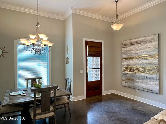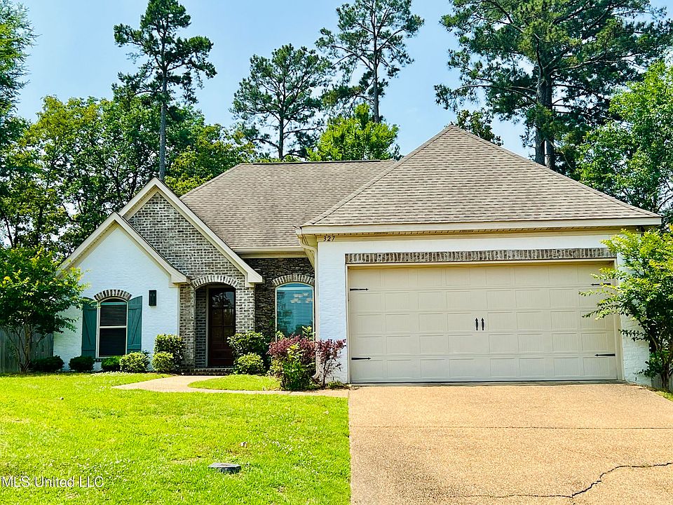 Qualified Buyer's move in with 0 down using USDA Rural Development Loan! Gorgeous 3 bedroom 2 bath open split plan with 1860 sq. ft. of living space! Formal entry, formal dining, living room with gas log fireplace. Open kitchen with granite counters, custom hood, large island, stainless steel appliances, built-in china cabinet and breakfast area! Spacious primary bedroom, primary bath with his and hers vanities and dressing area, Jacuzzi tub, and separate shower. Huge walk in closet with built-ins that conveniently opens to the laundry room! 2 guest rooms on the opposite side of the house share a hall bath! Large built in desk area off garage entry with pantry and cubby area for all the kids gear! Covered patio and large privacy fenced tree shaded backyard! Conveniently located just minutes from Dogwood Festival Market and the Ross Barnett Reservoir! Excellent Northwest Rankin Schools!