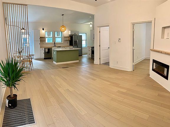 Check out this fully renovated “Shotgun” style home on a quiet street in the heart of downtown New Albany. This historic home was taken down to the studs and fully renovated to modern standards including: New Plumbing, New Efficient Hvac, New Electric, New Insulation, New Hardwood floors, New Hot Water Heater, Appliances, New Windows and more. Walk through the main bedroom off of the front porch and into the open concept, living/dining, and kitchen area featuring; a kitchen island with quartz countertops, a unique birch partition wall, and a modern electric fireplace. Off of the main room you will find a smaller second bedroom/office and the beautifully renovated bathroom with high end finishes including a waterfall shower, cast iron enamel tub and tile though out. Walking outside the backdoor you will find a nice size yard and a 2 car garage.